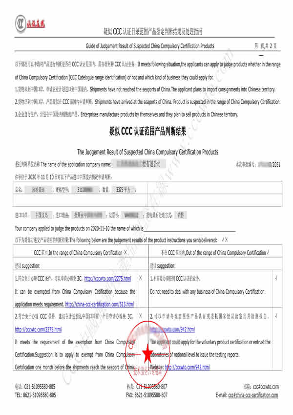 CCC认证范围界定判断报告样本
